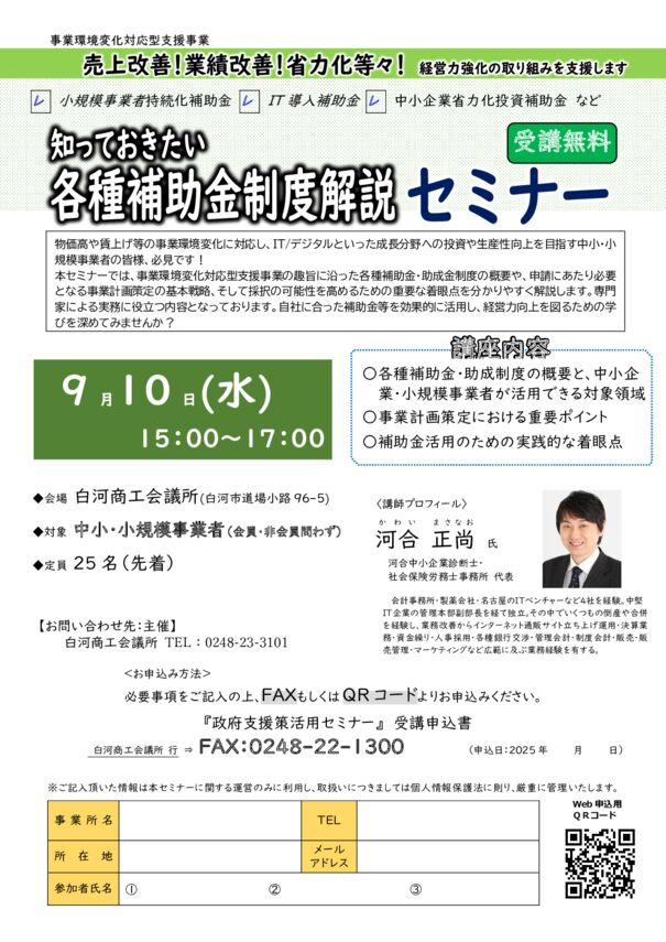 ダウンロードはこちら 小規模事業者持続化補助金・IT導入補助金・中小企業省力化投資補助金など・・・ 知っておきたいさまざまな補助金について、どんなことに補助金を活用できるのか、何をしなければならないのか、分かりやすく解説 […]