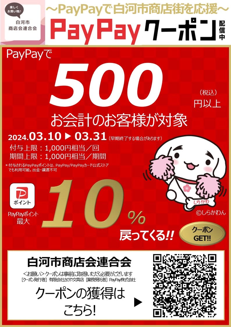 一定期間中、参加店で500円以上の会計をPayPayで決済することにより、