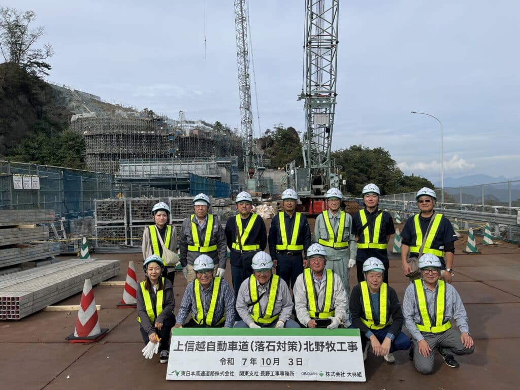 白河商工会議所建設業部会では、令和7年10月3日(木)に上信越自動車道・北野牧工事現場(群馬県安中市松井田町)の視察研修会を実施しました。 当日は会員10名、事務局4名が参加し、「世界初となる災害に備える予防保全工事」の現場を見学しました。