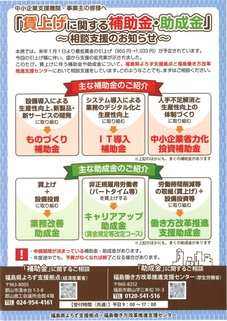 ホーム > お知らせ > 賃上げに関する補助金・助成金~相談支援のお知らせ~